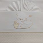 Juego de sabana de mini Cuna modelo Osito. Juego de sabana de cuna de la casa Bebelindo, fondo Blanco con bonito bordado en Beige, de tacto muy suave. Plazo de entrega: 2 a 4 días hábiles.