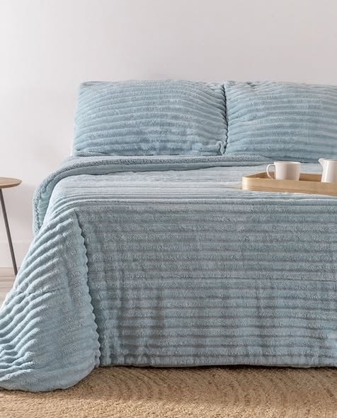 Edredón acolchado jacquard sherpa modelo Larges Stripes con en colores rosa y agua marina disponible en 105, 135, 150 cm.