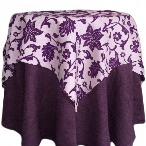 Tapete modelo Flores para mesa redonda de color lila .