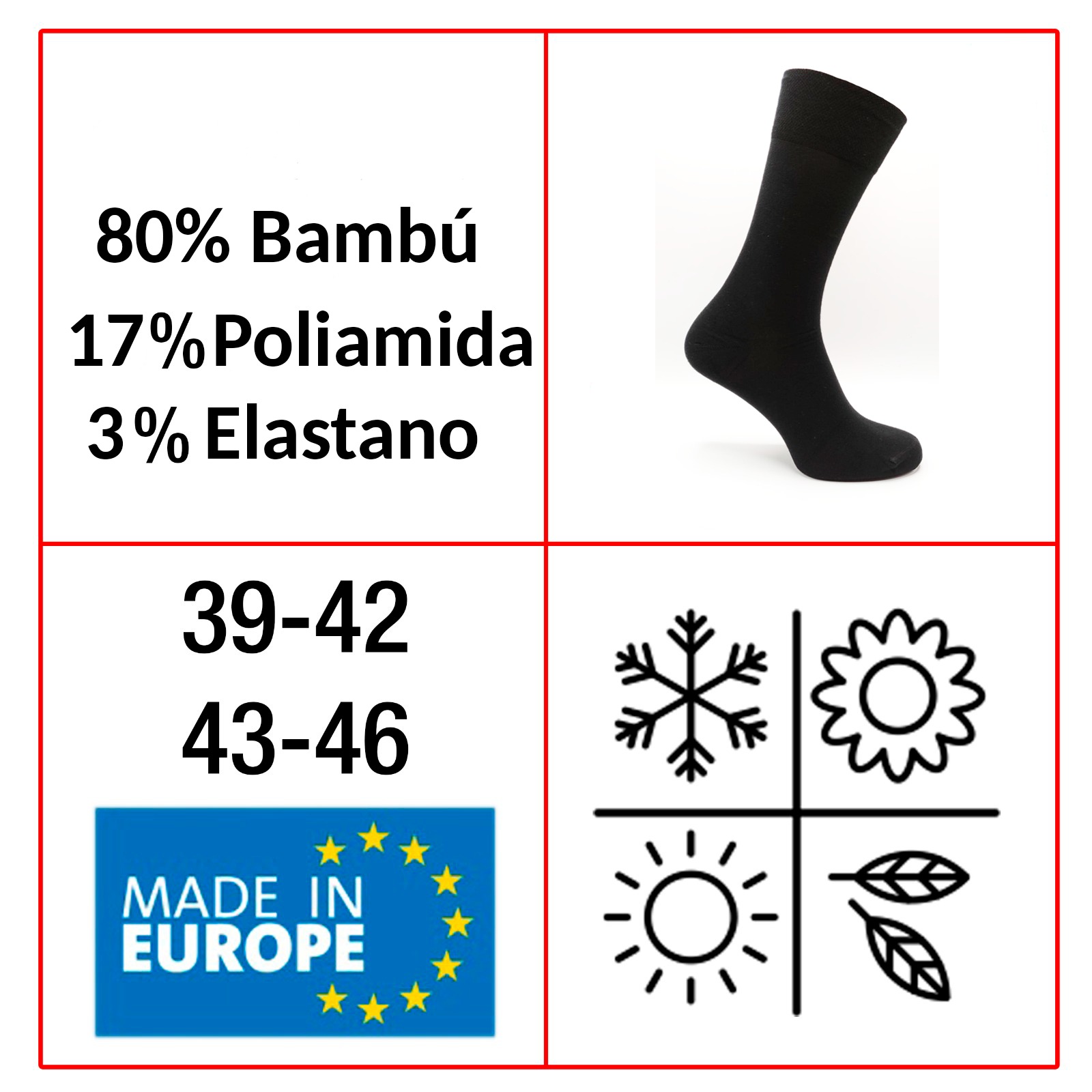 BENEFICIOS: Los innovadores calcetines de bambú absorben más humedad que los calcetines tradicionales. El bambú es un material natural, fino y suave. Recomendados para pies secos y sensibles. Antibacteriano y previene la formación de malos olores.
