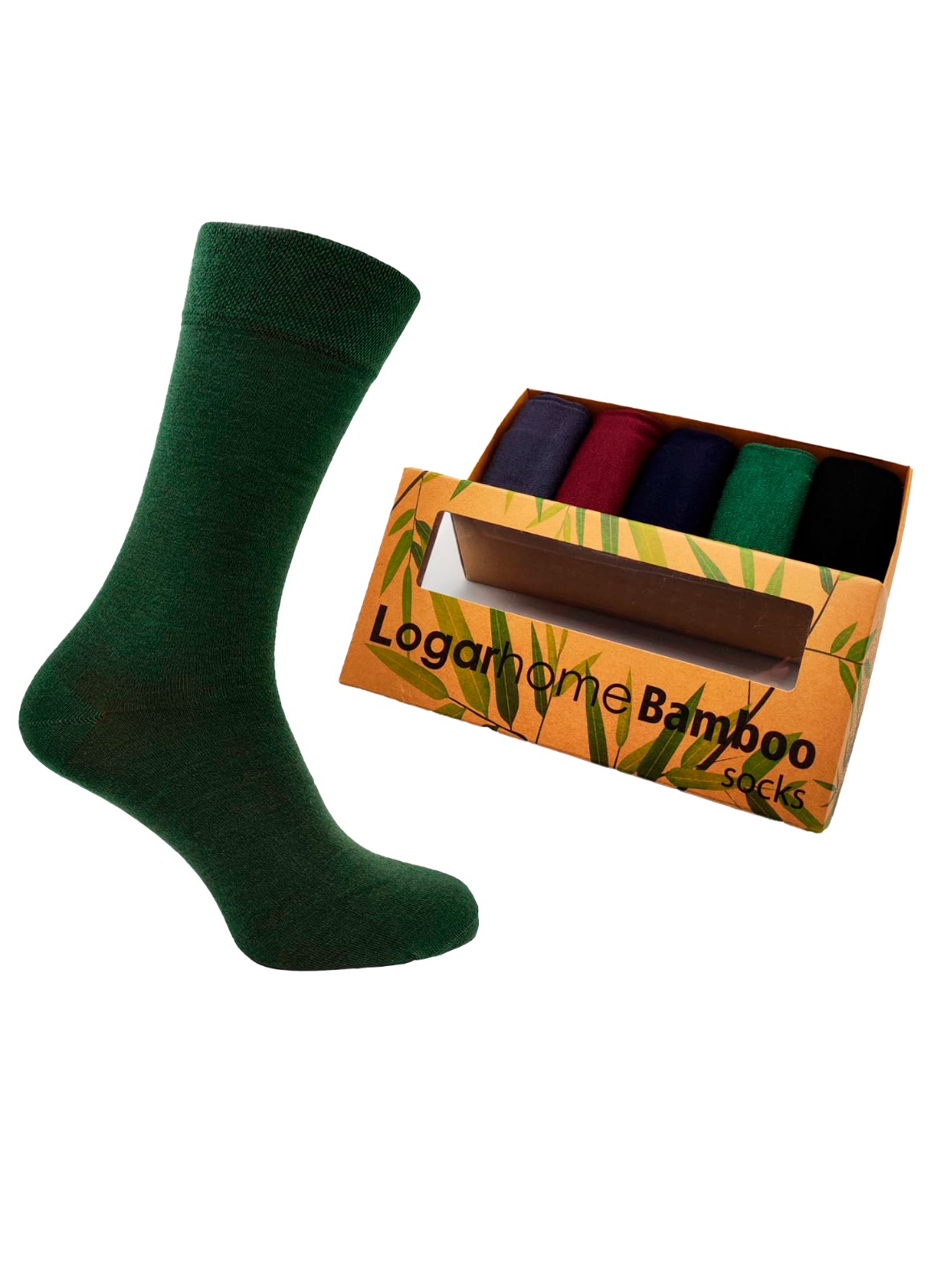 Caja de 5 pares con 5 colores: negro, gris oscuro, azul marino, verde oscuro, púrpura.