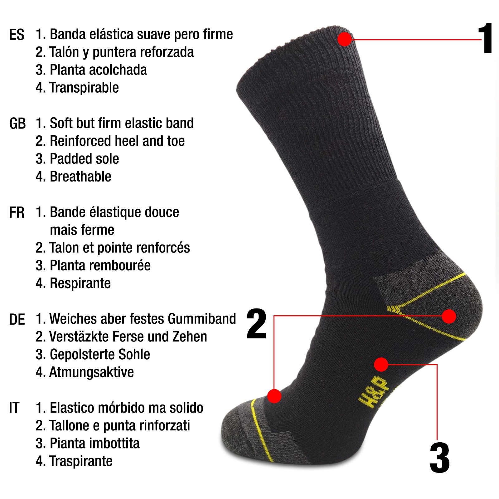 RESISTENTES PARA EL TRABAJO DIARIO: Calcetines con refuerzos en talón y puntera para soportar largas jornadas laborales sin desgaste.