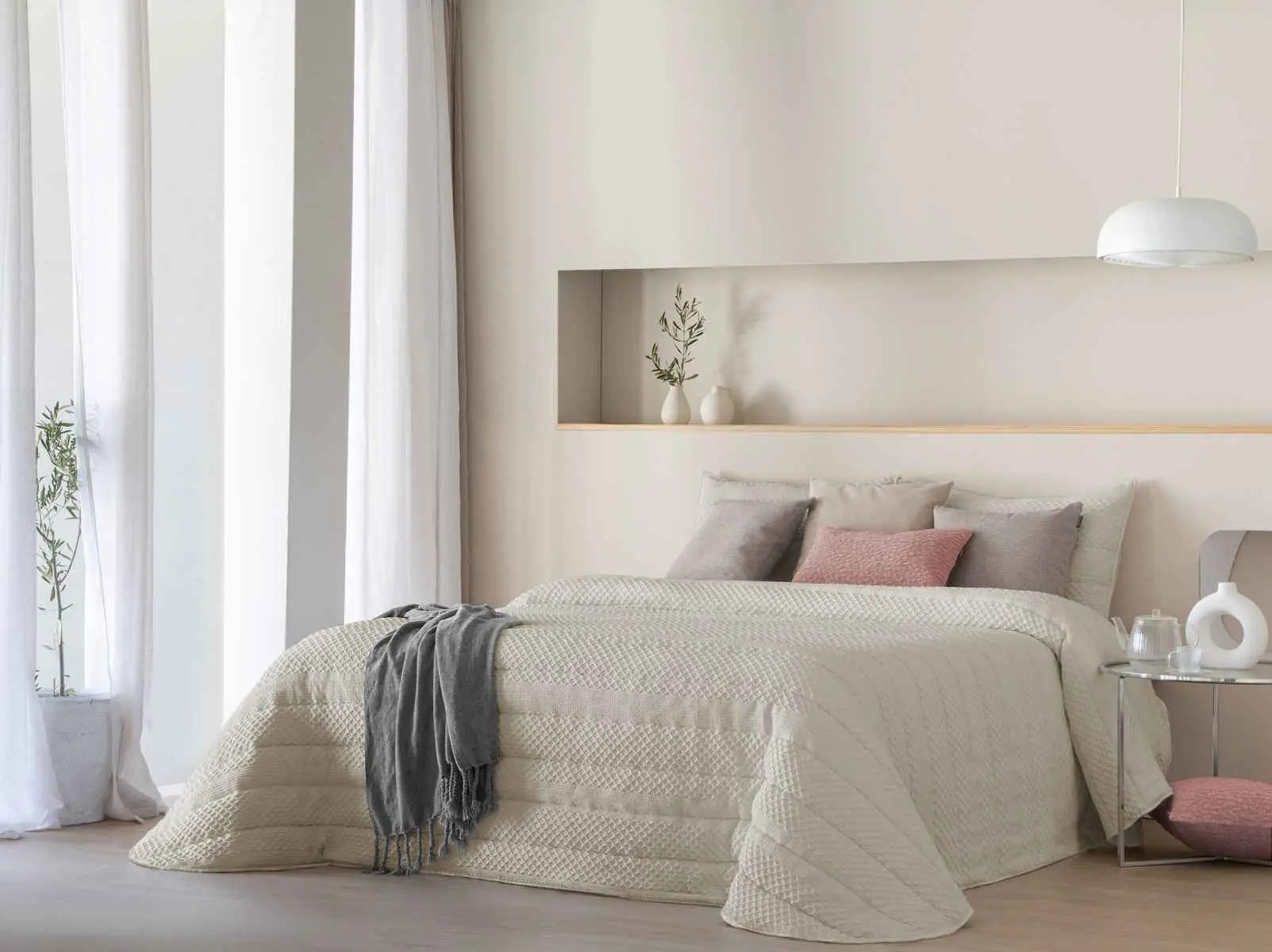 Colcha bouti de acolchado fino de 100 gr/m2 que lo hace ideal para los meses de otoño e invierno.